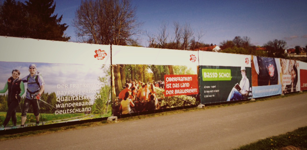 Nachdem letzte Woche die Landesgartenschau in Bayreuth gestartet ist, können wir unser Geheimnis jetzt lüften: es gibt 23 eingens illustrierte und gestaltete Banner von uns auf der Landesgartenschau Bayreuth 2016 zu sehen. Diese entstanden in enger Zusammenarbeit mit Oberfranken Offensiv. Die Banner befinden sich gegenüber der Seebühne am Gehweg entlang. Dort wurde der zur Absperrung verwendtete Bauzaun des Geländes von uns optisch aufgehübscht. Wir wünschen viel Spaß auf der Landesgartenschau und denkt an uns, wenn ihr unsere Banner entdeckt 😉